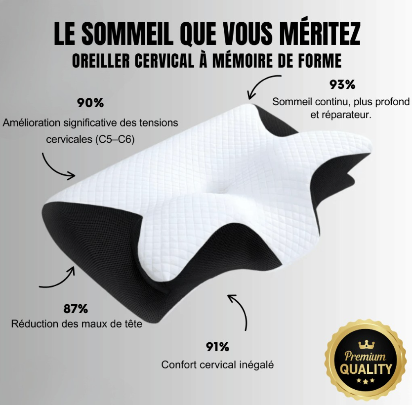 Découvrez Cervi-Relax, l’innovation ergonomique qui révolutionne votre sommeil. Conçu pour offrir un soutien cervical optimal, cet oreiller à mémoire de forme épouse parfaitement la tête et le cou afin de réduire les tensions et améliorer la qualité de vos nuits.